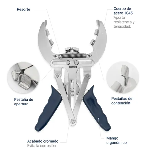 La pinza Bremen 8296 es una herramienta automotriz profesional indispensable para el armado de motores. Su diseño permite expandir los aros de pistón de manera uniforme y controlada, evitando que se deformen, se rayen o se quiebren durante la instalación en las ranuras del pistón. Es la solución ideal para garantizar un montaje preciso en motores de motocicletas, autos y utilitarios ligeros.