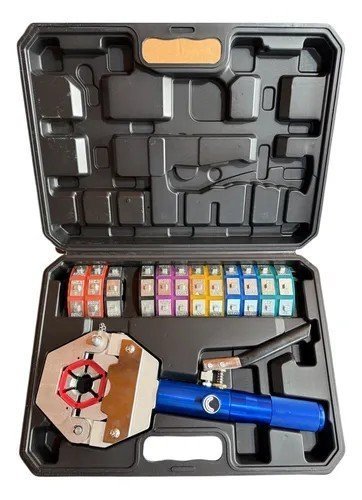 • Kit de Mordazas: Incluye un juego completo de 7 matrices (mordazas) intercambiables para las medidas de mangueras más comunes (#6, #8, #10, #12 y medidas reducidas).