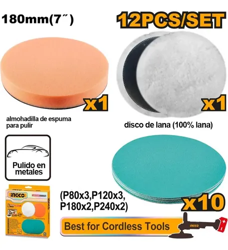 Juego de Pulido y Esmerilado 7″ (180mm) INGCO x 12 Piezas (APG18012)
