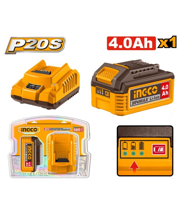 Kit Cargador Inteligente y Batería 4.0Ah 20V INGCO (FBCPK1012-4)