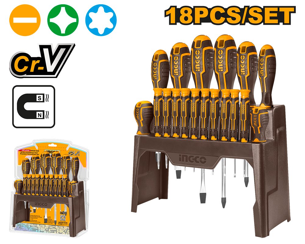 Juego de Destornilladores y Puntas 18 Piezas – INGCO HKSD1828