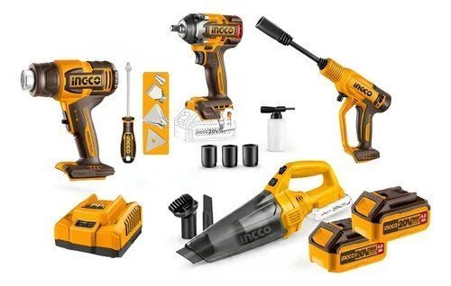 Equipá tu taller o emprendimiento de estética vehicular con este Set Multitarea de 20V. Este kit exclusivo de Ingco reúne cuatro herramientas fundamentales que comparten la misma plataforma de batería P20S, ofreciendo una solución integral para el mantenimiento y limpieza profunda de vehículos.