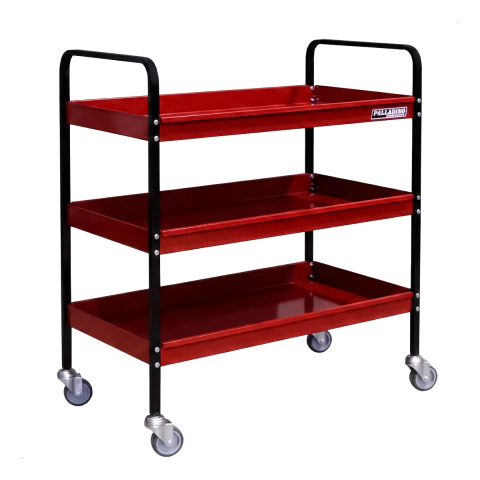 - Triple Nivel de Carga: Tres bandejas amplias con bordes elevados que evitan la caída de herramientas o el derrame de líquidos durante el traslado.